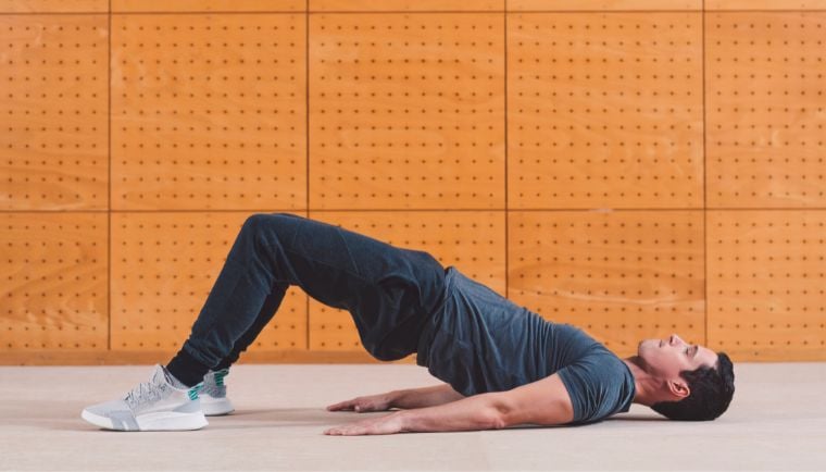 Forklaring: Ligg på gulvet med knærne bøyd, føttene skal være flatt på gulvet, med armene ned langs siden, håndflatene pekende ned mot gulvet. Ta i fra helene og hev hoftene fra gulvet, her må du bruke både magemusklene, rumpemusklene og hamstrings. Øvre del av ryggen og skuldrene skal fortsatt være i kontakt med gulvet, mens delen som ikke er i gulvet skal danne en rett linje, du trenger derfor ikke presse slik at du får en bøy i ryggen. Hold ett par skunder på toppen før du returnerer til startposisjon og gjentar prosessen.