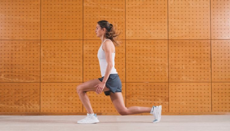Forklaring: Start med å stå med føttene i skulderbredde, med armene ned langs siden. Ta et steg frem med høyre fot, og bøy kneet, stopp når du har 90graders vinkel bak kneet, kneet skal ikke foran foten. Press tilbake og returner til utgangsposisjon. Gjenta øvelsen med motsatt fot.